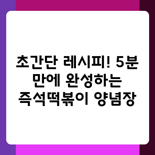 떡볶이가 먹고 싶은데, 양념장 만드는 게 어렵다고 생각하세요? 매콤달콤한 즉석떡볶이를 집에서 간편하게 만들 수 있는 초간단 양념장 레시피를 알려드릴게요. 재료도 간단하고, 과정도 쉬워서 누구나 맛있는 떡볶이를 만들 수 있답니다. 지금부터 제가 알려드리는 비법대로 따라 해보세요!